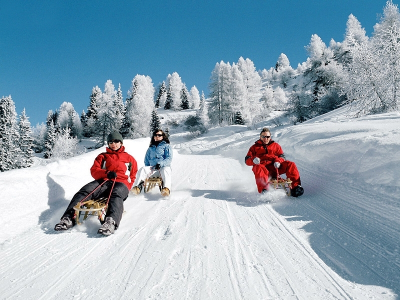 • зимой – катание на лыжах и санках