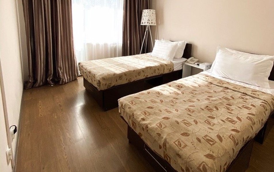 В номере: кровати односпальные /одна двуспальная кровать, прикроватные тумбочки, стол, стул, шкаф, кондиционер, микроволновая печь, телевизор, телефон, холодильник, чайный набор посуды, электрочайник