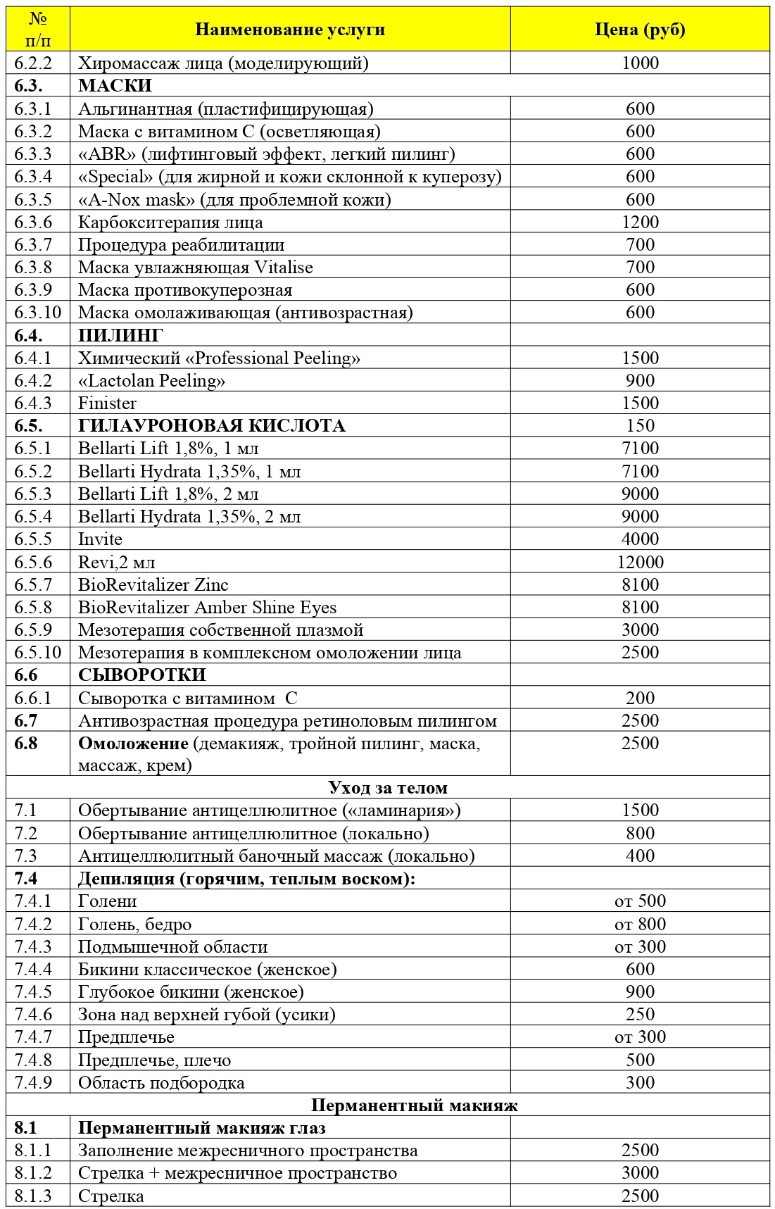 Цены на косметологические процедуры в санатории «Сосновый Бор» Казани